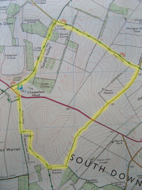 Not a ‘Head Walk’, whatever that is, but Cheesefoot Head is a viewpoint at the western end of the South Downs, close to Winchester.
