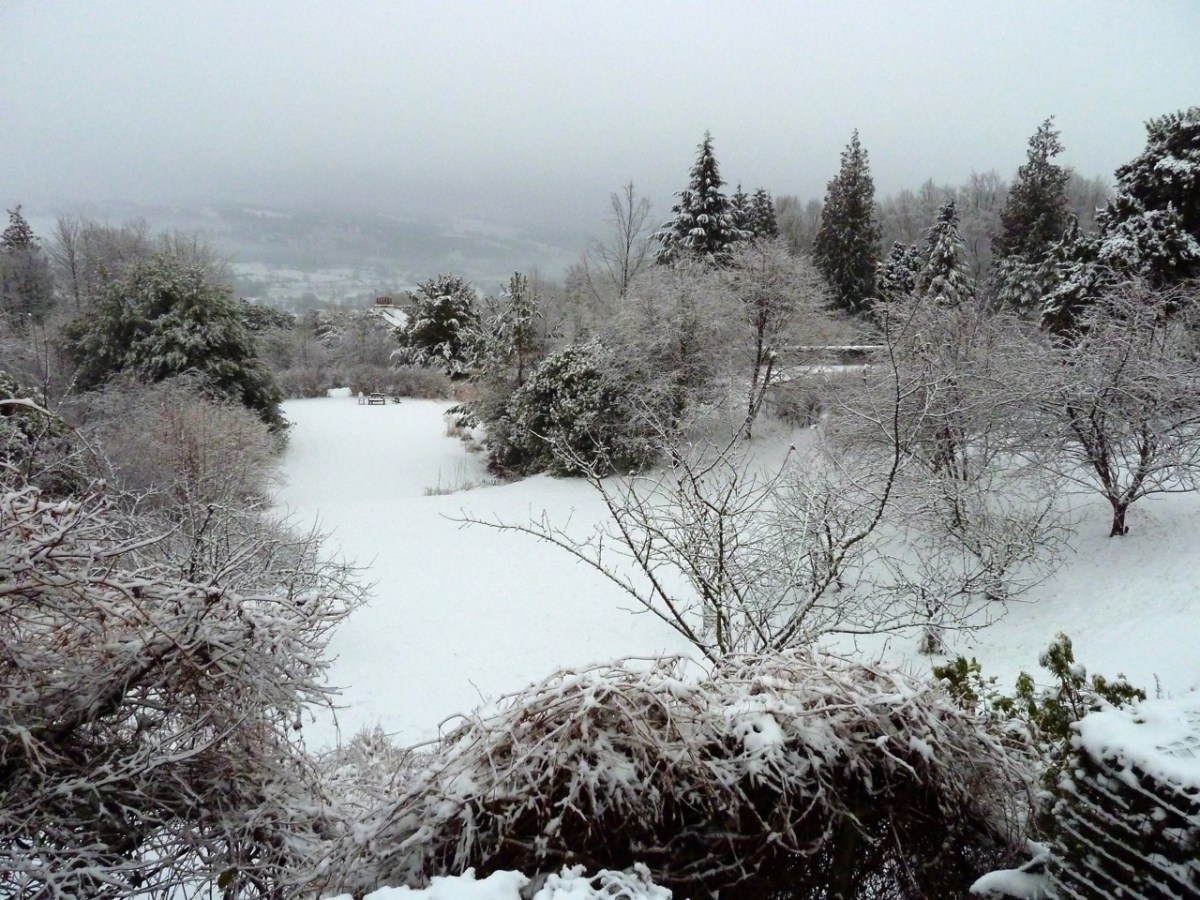 Today is the last day of the retreat, and our group has no chores to do. Looking out at the still dark morning, I see we’ve had a few cm of snow at Hawkshead Hill overnight. After breakfast: