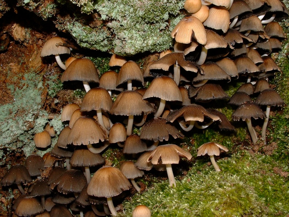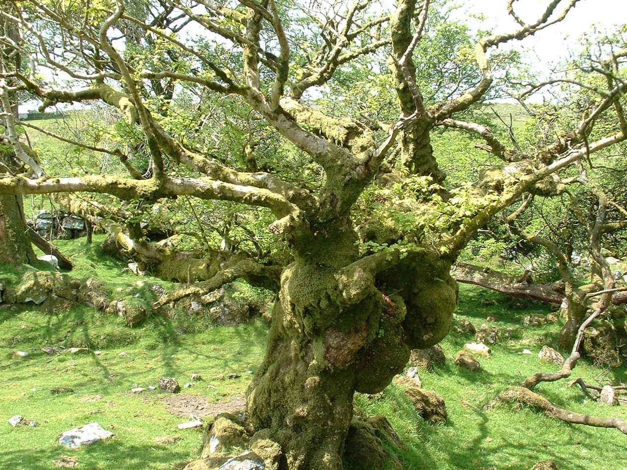 Another from 2003. After a long featureless trek across the open moor, C and I found ourselves in a small valley, with a group of gnarly oaks surrounded by a crumbling dry stone wall. Everything within the wall seemed to be covered with moss. Within the mossy trunk of this tree, hundreds of fungi: