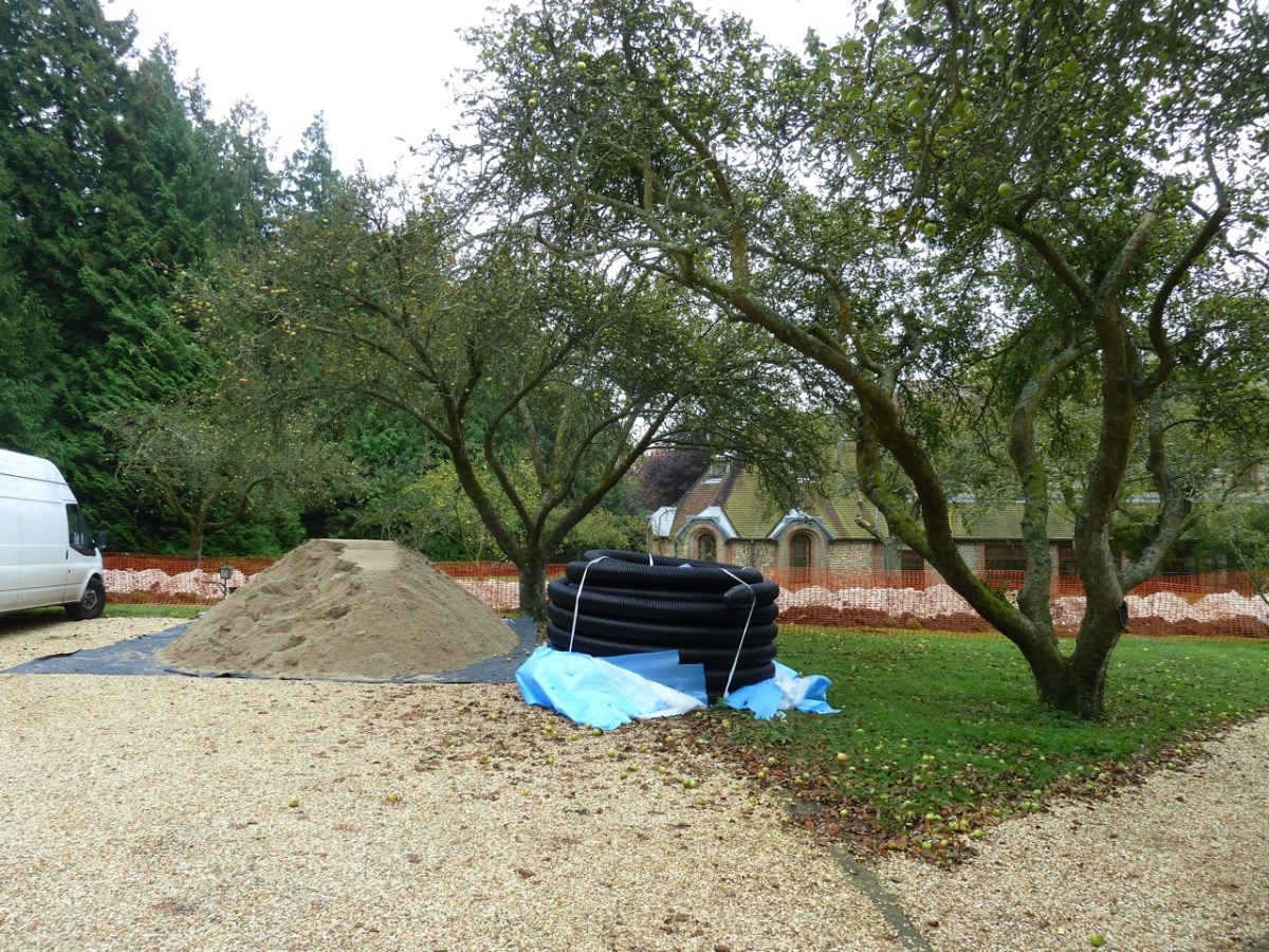 Digging the pipeline between the Centre and the new wood chip boiler house out near the car park. Rather than disturbing the brick path, a tunnel was dug underneath.