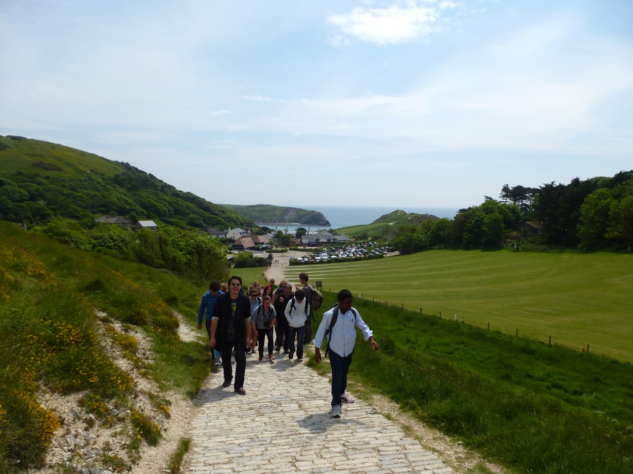 Friday was to the Jurassic Coast in Dorset. After a two-hour drive, we parked at Lulworth Cove and climbed the steep wide path from the car park over towards Durdle Door, a path so trodden it’s been paved and almost looks like I imagine a Roman road to look. We were about eight staff and forty students.
