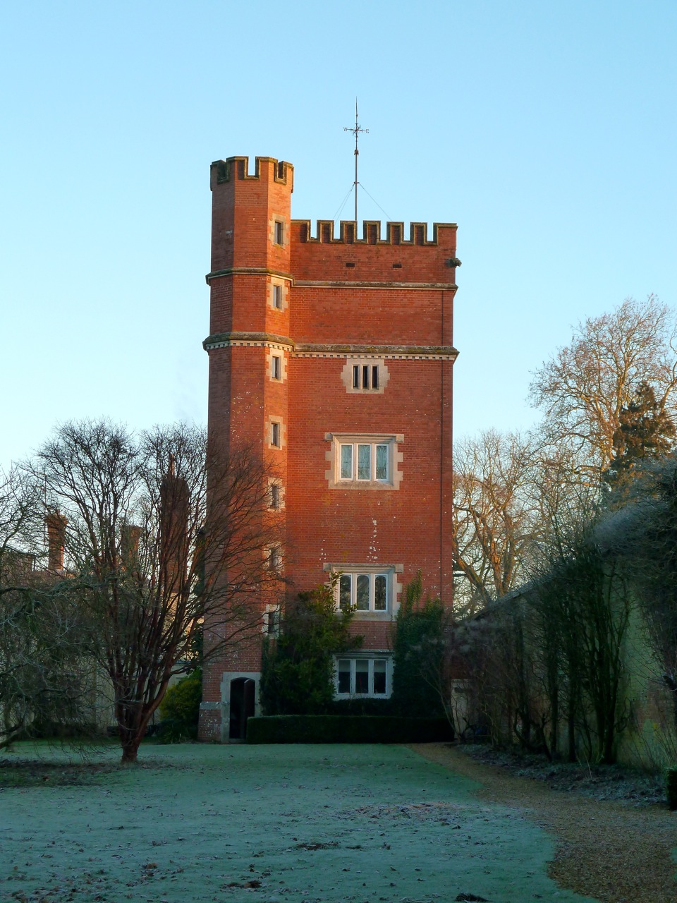 C didn’t pass the driving test. She drove away from a zebra crossing while the pedestrians were still finishing crossing (over in the other lane). So while it wasn’t dangerous, it was breaking the law. The repeat test is in four weeks. But she had a good day for it, after all the rain. We had a deep frost followed by sun and a glowing sunset. Here’s the tower at around 08:20 this morning: