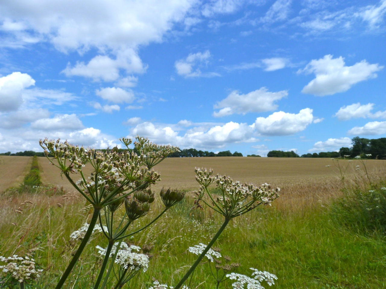 This morning I walked the remainder of the Hangers Way, a 21 mile path from Alton in Hampshire to the South Downs at the Q.E. Country Park. A sunny June morning, it was a hot walk and I was glad of the stiff breeze and the shaded sections. Petersfield was busier than normal. I found out this was because of the Petersfield Festival of Food & Drink (which at first I thought was just an extension of the usual market). The walk took me through the town and the mobile homes park. It’s got to be the neatest mobile homes park I’ve seen. Each garden was immaculately looked after. Then I headed south, getting a bit off track leaving the park, before picking up the Way along kind of a dyke, which lead down to Buriton. Buriton is such a sweet little village, with the pond as its main feature. I was surprised no one was there visiting. One lady in a garden, one walking her dog, that’s it. On the south edge of the village a team of Community Service workers were maintaining the cemetery. One local was stood in his doorway looking rather concerned at these tattood and stern faced men trimming hedges and strimming and repainting gates. Under the railway, then it was up onto the higher ground of the South Downs, but wooded hill here, mainly planted in the 1930s. It was busy there with hikers and cyclists, picnickers and families.