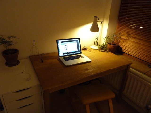And my new study (just a corner of the bedroom), 2011. Only the anglepoise matches:
