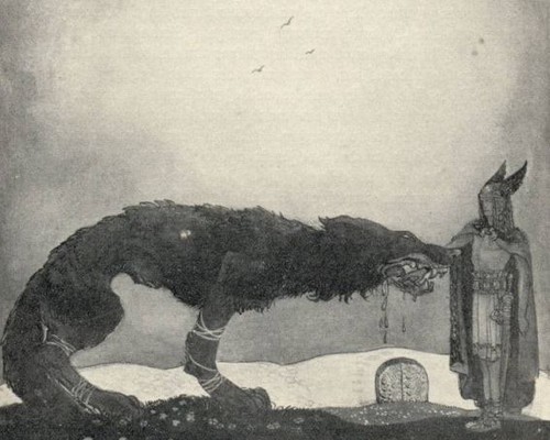 A friend said it reminded her of the ones drawn by John Mauer, the Swedish illustrator. So I checked out some of his pieces. Here is a collection, all from between 1904-1918, starting with the horse: bauer - into_the_wide_wide_world john bauer snow Bland tomtar och troll bauer tree bauer tyr fenrir bauer tomten bauer bauer bauer norbauer The Child and the Stone Troll (John Bauer) John_Bauer_1915