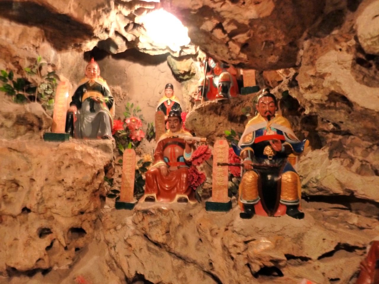 It took a couple of hours to walk round most of the ancient fortress city, 1 km long. I left via the north exit so I didn’t have to walk all the way back south, over a wide moat surrounding the whole compound. I headed west towards Beihai Park, with its large lake and White Dagoba. On climbing the hill and walking past the monument I noticed a sign saying Caves. It wasn’t highly publicised. I paid 50p to climb down tunnels hundreds of years old. I found myself laughing at the contrast – suddenly I was alone underground. Along the tunnels were 100 statues of emperor looking fellows. Each one represented three birth years. Mine was number 48, an ugly bearded little fellow. On the exit were fine views over the lake. Then a Sunday afternoon walk in the shade along the east side of the lake, paddleboats paddling and picnicking people.